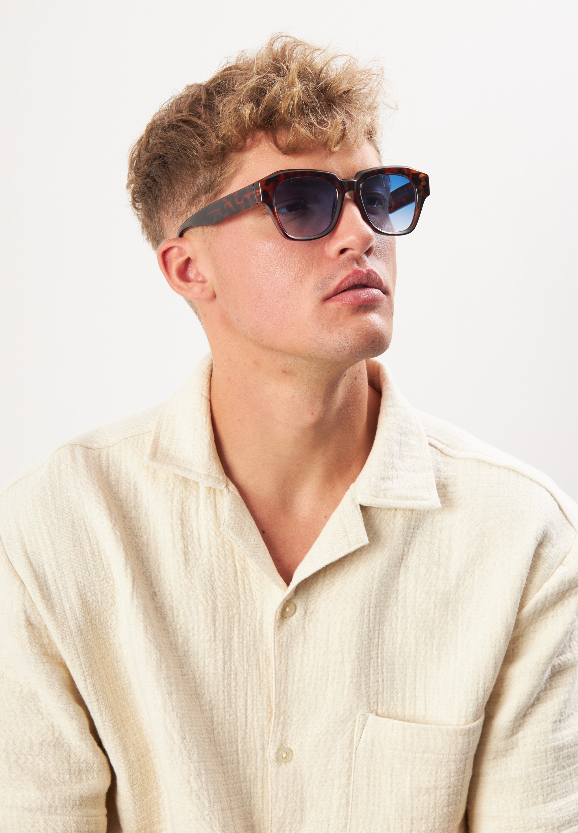 Solglasögonen Grande från ECO Shades är som namnet antyder en lite större båge för en mer uttrycksfull look. Modellen har blåfärgade linser i återvunnet material.