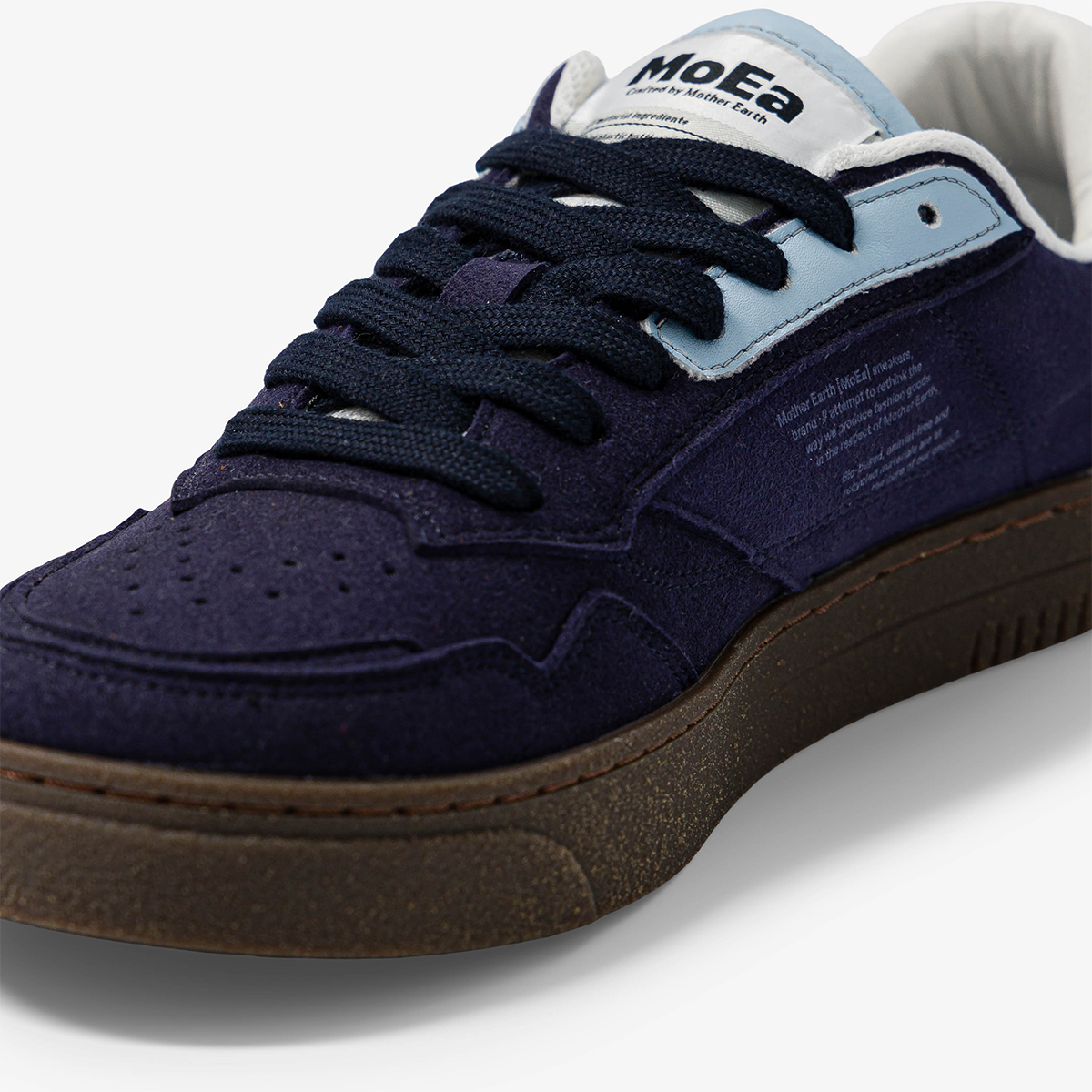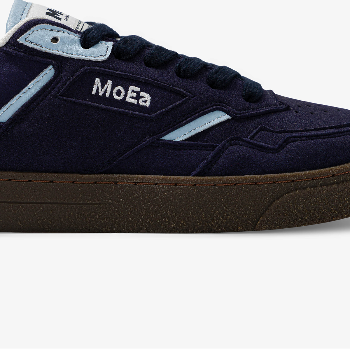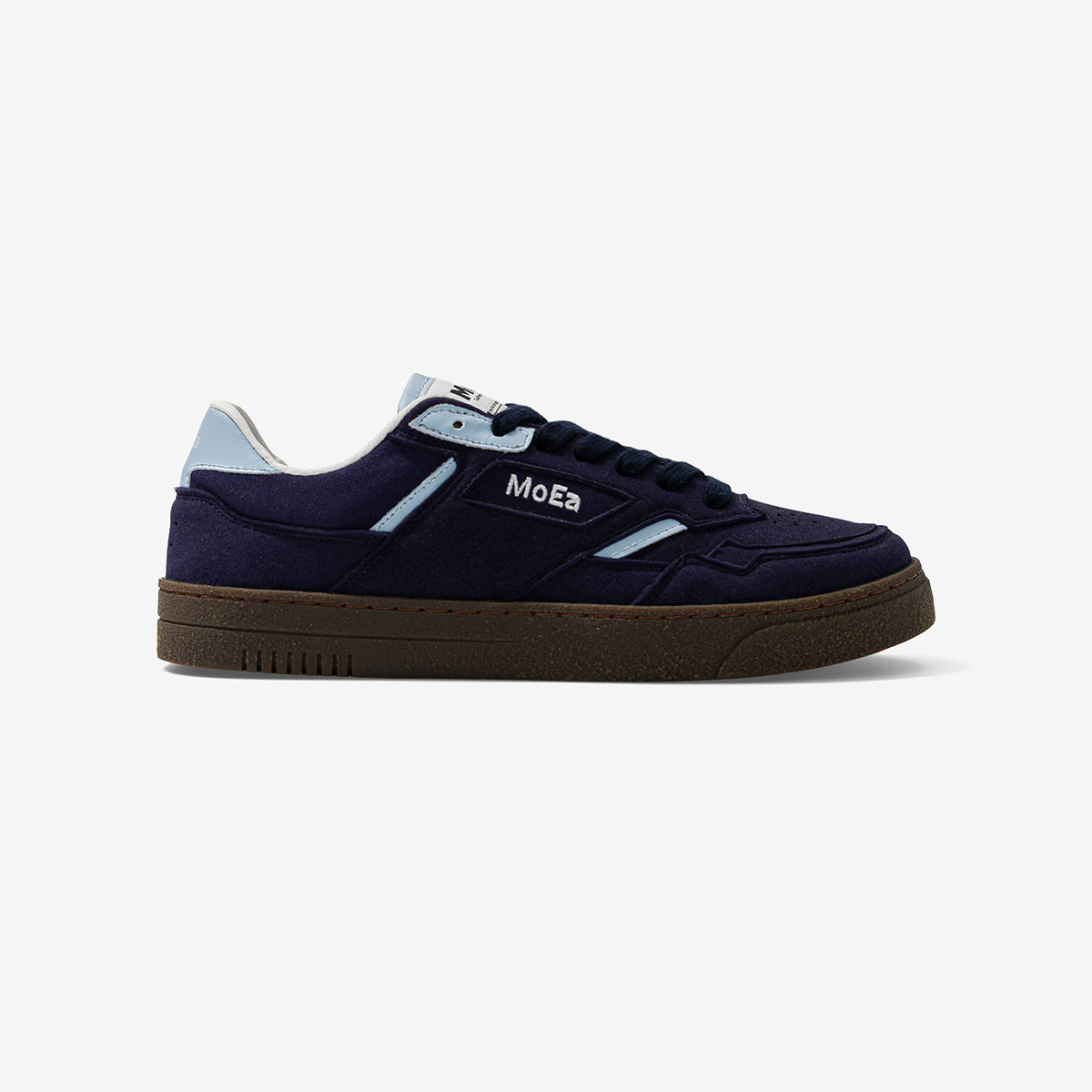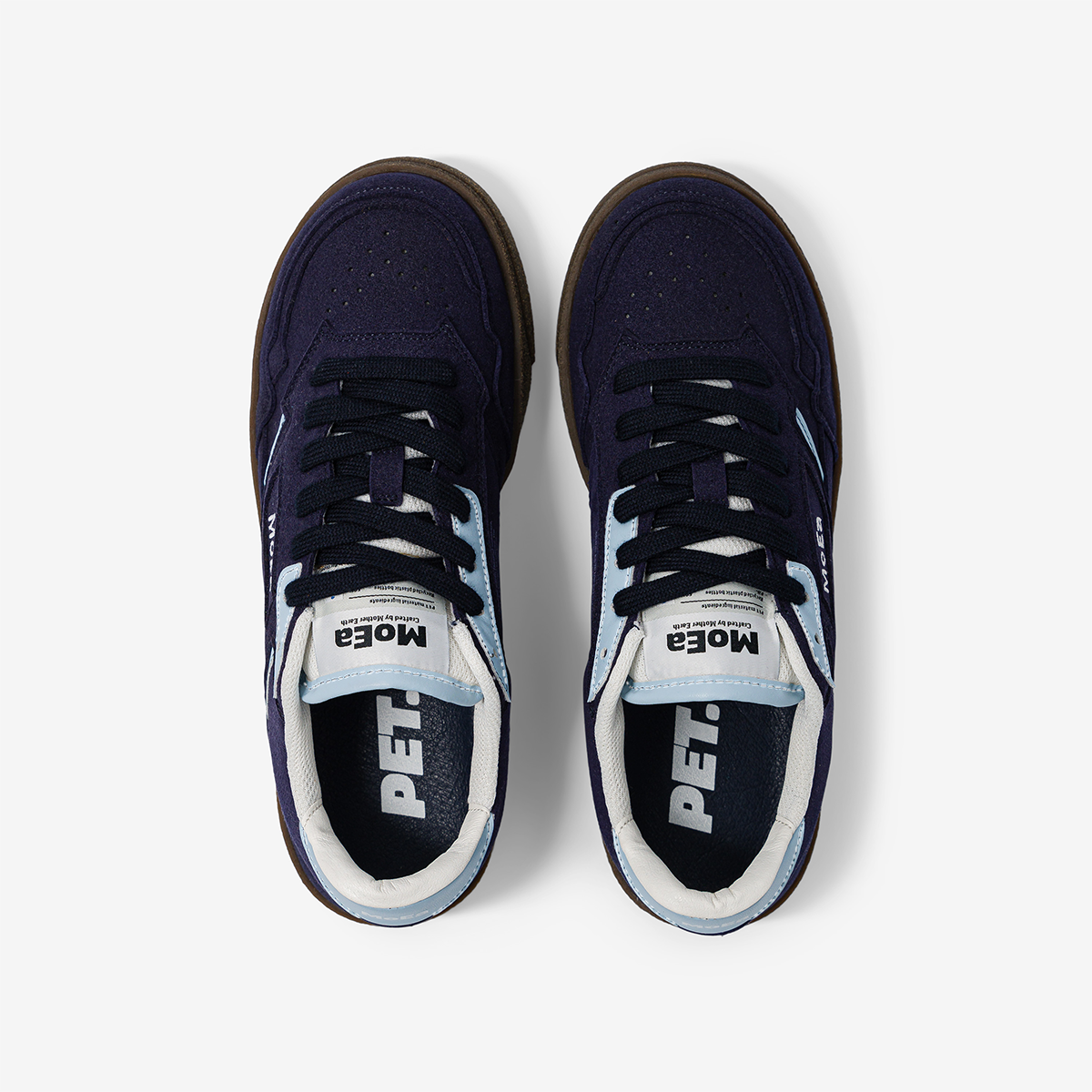 GEN 9 – PET Navy & Sky blue Suede är veganska sneakers tillverkade av återvunnet material i blått och vitt med kontrasterande sula i en varm mörkbrun ton. Skorna har en tidlös design, material som andas och en stötdämpande sula av återvunnet gummi som är skapade för att förena komfort med medvetenhet.