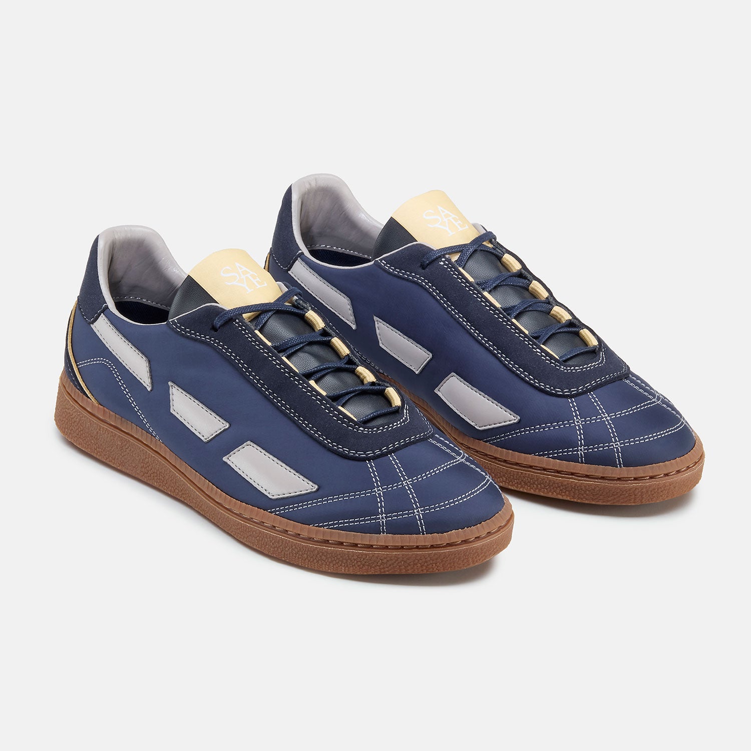M70 Match från SAYE är en vegansk sneaker i ickeanimaliska material tillverkat av polysulfon för maximal slitstyrka i färgställningen marinblått och grått med beige detaljer. Märket fortsätter att kombinera vintage med en samtida look och samtliga material har valts på grundval av hållbarhet över tid. Bekväm med uttagbar innersula.