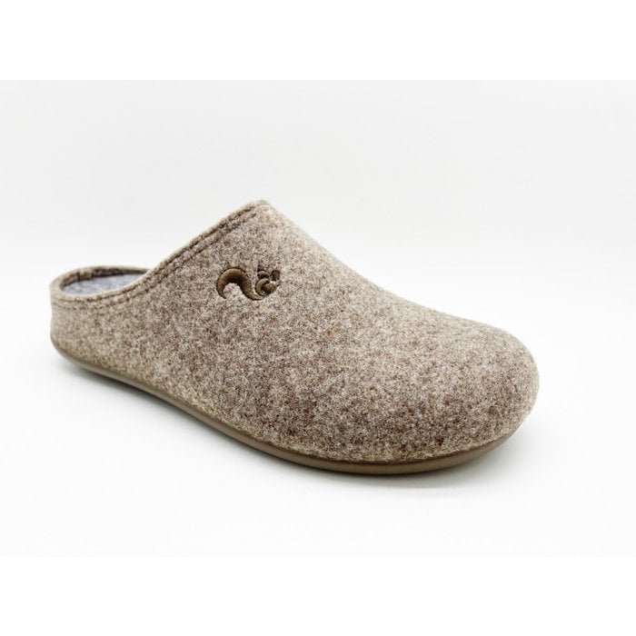Thies beige toffla i återvunnen PET fotograferad snett framifrån Thies beige toffla i återvunnen PET fotograferad snett framifrån