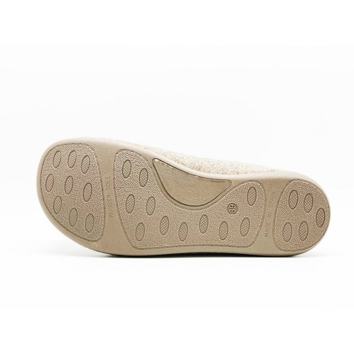 Thies beige toffla i återvunnen PET fotograferad från sidan Thies beige toffla i återvunnen PET fotograferad från sidan