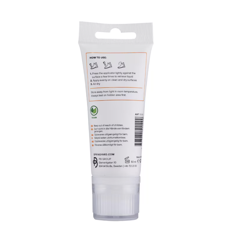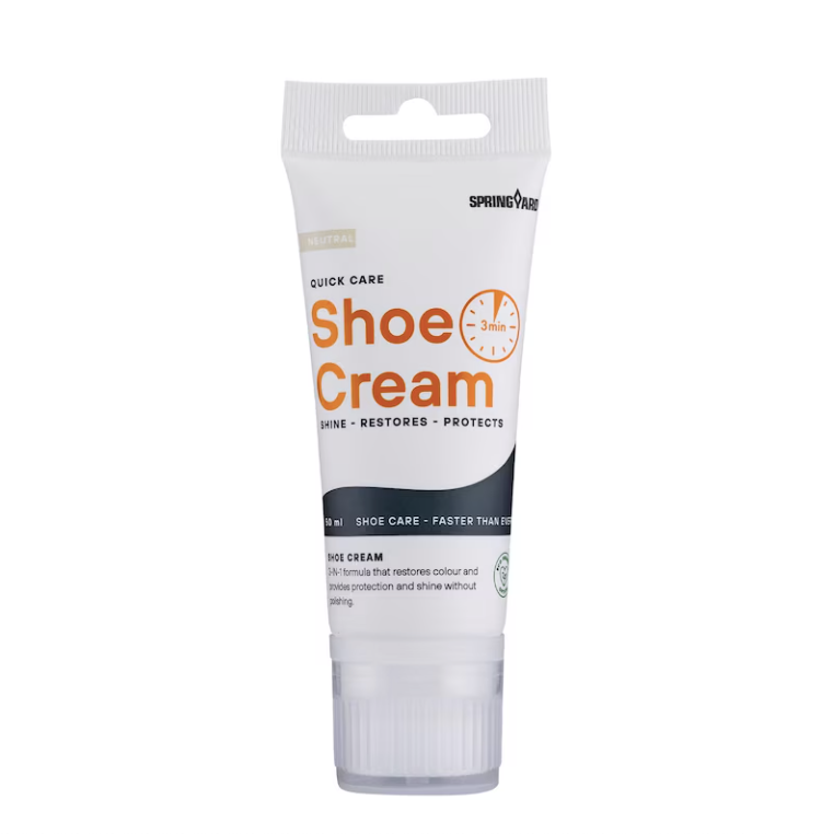 Springyards skokräm Shoe cream quick care vårdar och skyddar konstskinn mot väta och smuts. Bidrar med glans samt fräschar upp färgen på skon. Vattenbaserad formula med bland annat karnaubavax. Tub med applikator. Produkten är inte miljö- eller hälsofarlig.